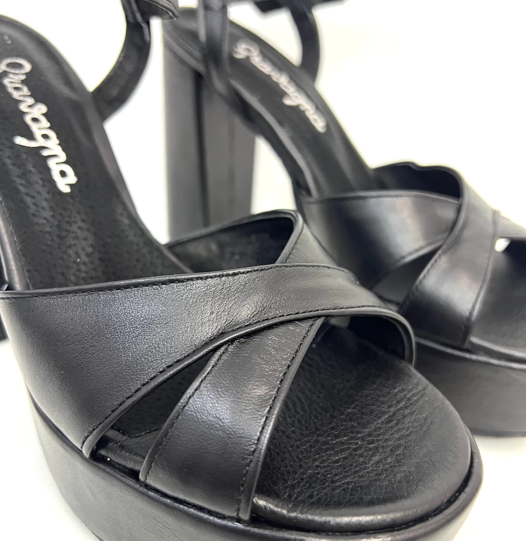 Sandalia de vestir 100% cuero vacuno. Plataforma con base antideslizante y ajuste de pulsera.